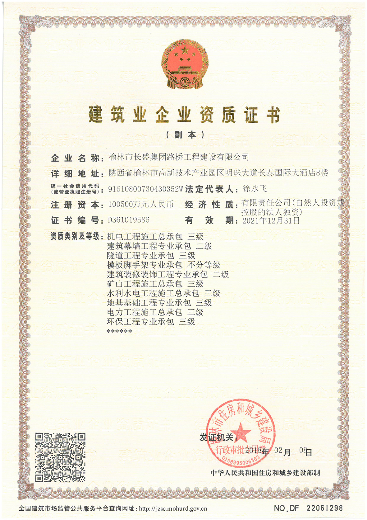 建筑業(yè)企業(yè)資質證書