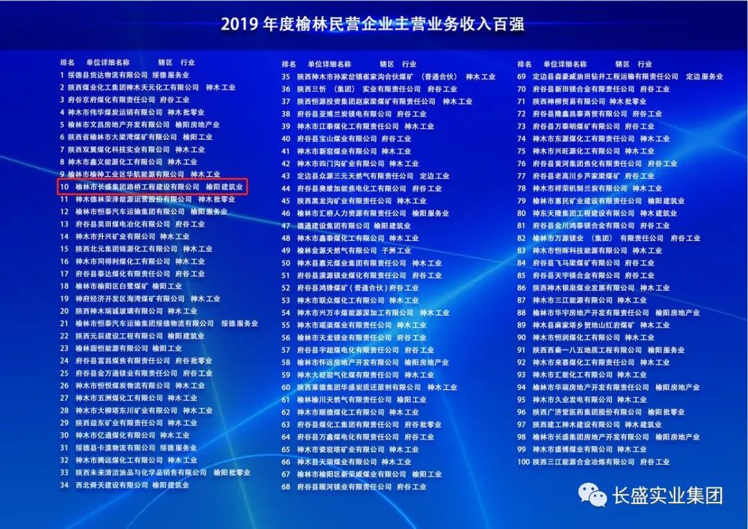 長盛路橋公司入榜榆林市建筑企業(yè)主營業(yè)務收入四十強和民營企業(yè)主營業(yè)務收入百強