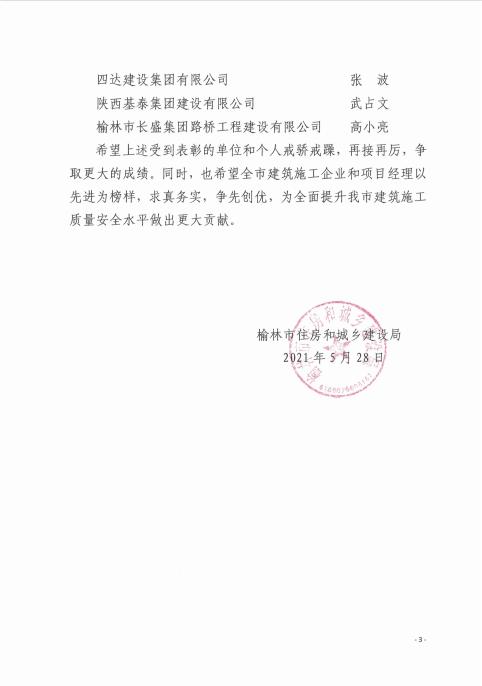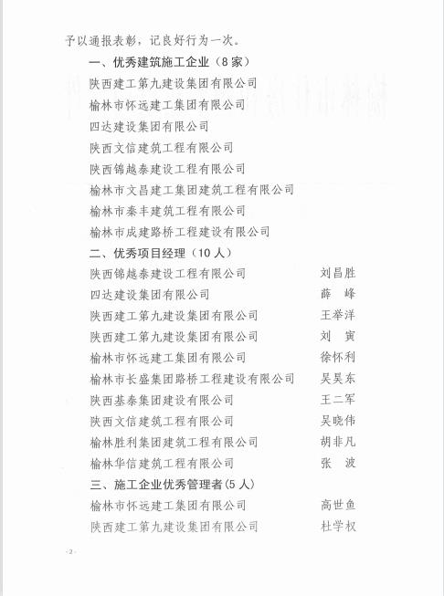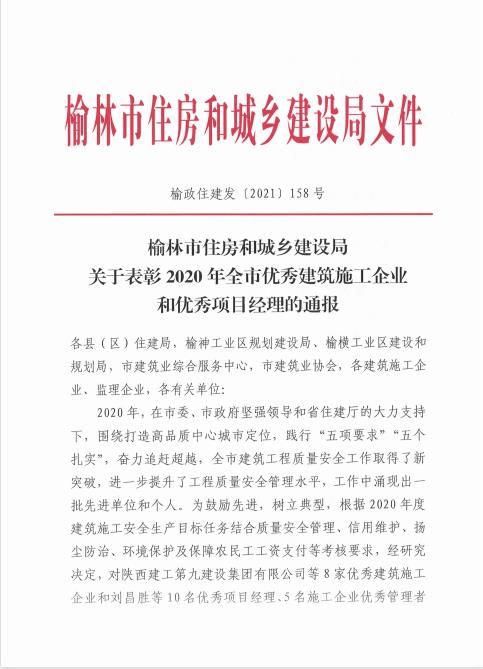 榆林市住房和城鄉(xiāng)建設(shè)局關(guān)于表彰2020年全市優(yōu)秀建筑施工企業(yè)和優(yōu)秀項(xiàng)目經(jīng)理的通報
