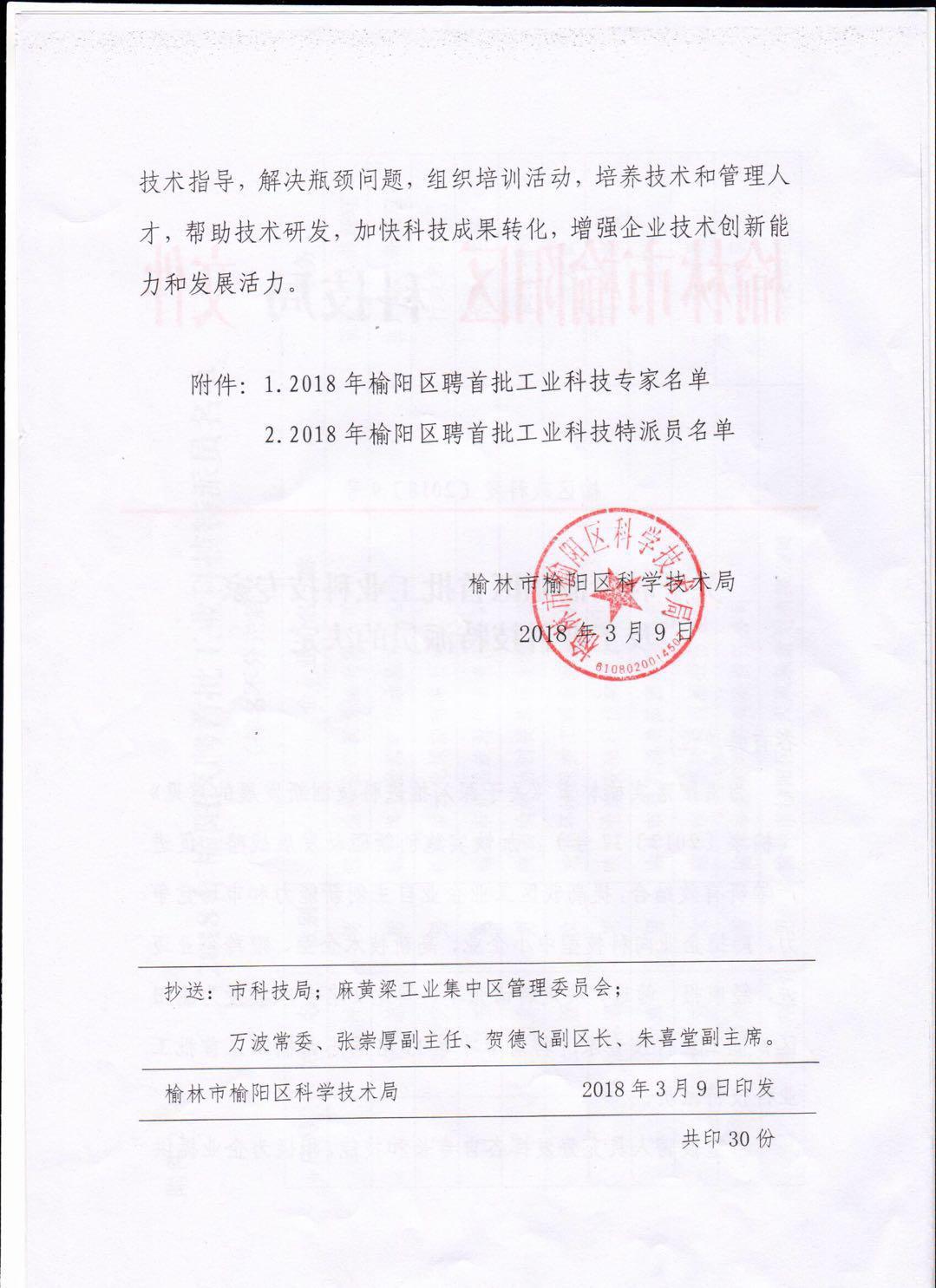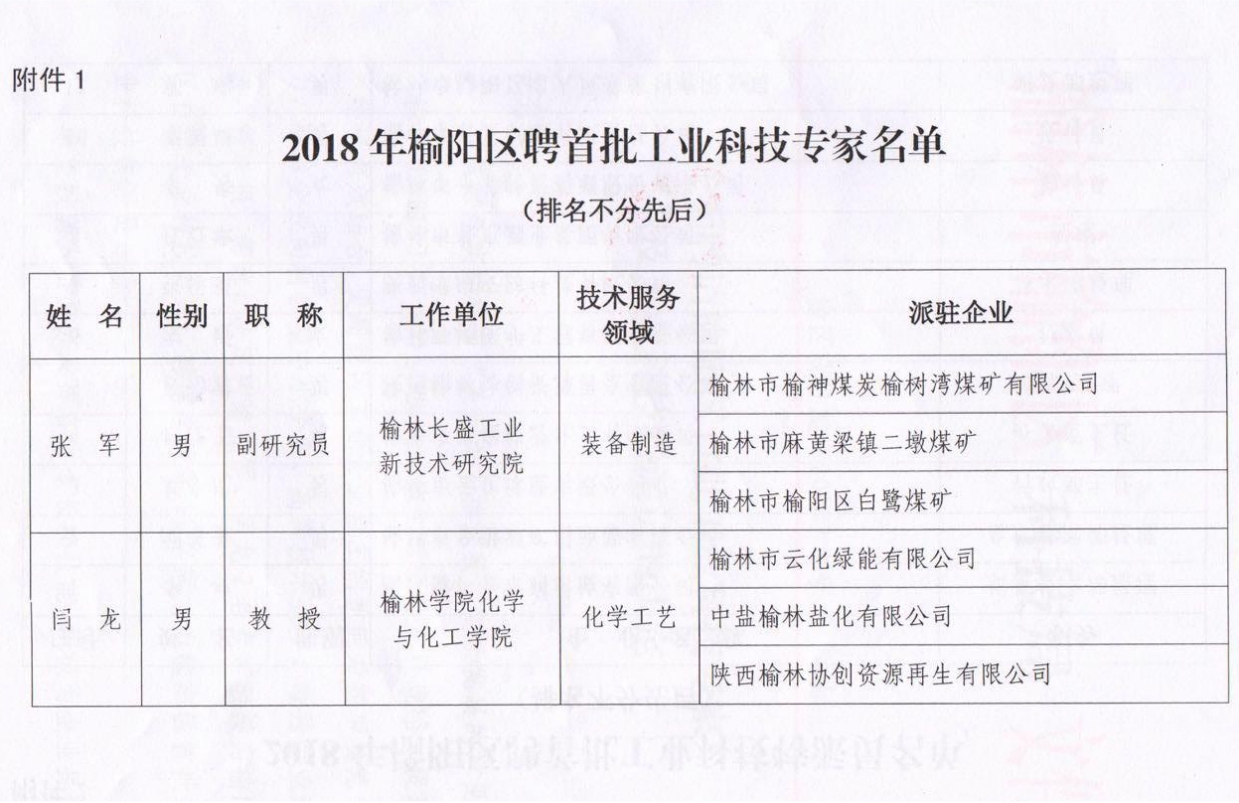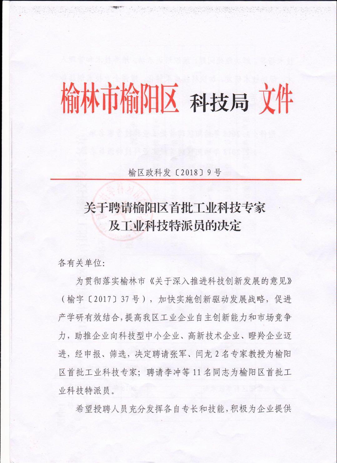 關(guān)于聘請(qǐng)榆陽(yáng)區(qū)首批工業(yè)科技專家及工業(yè)科技特派員