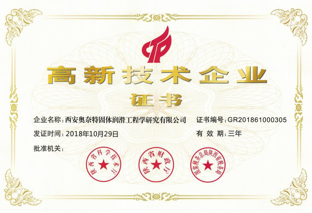 高新技術(shù)企業(yè)證書