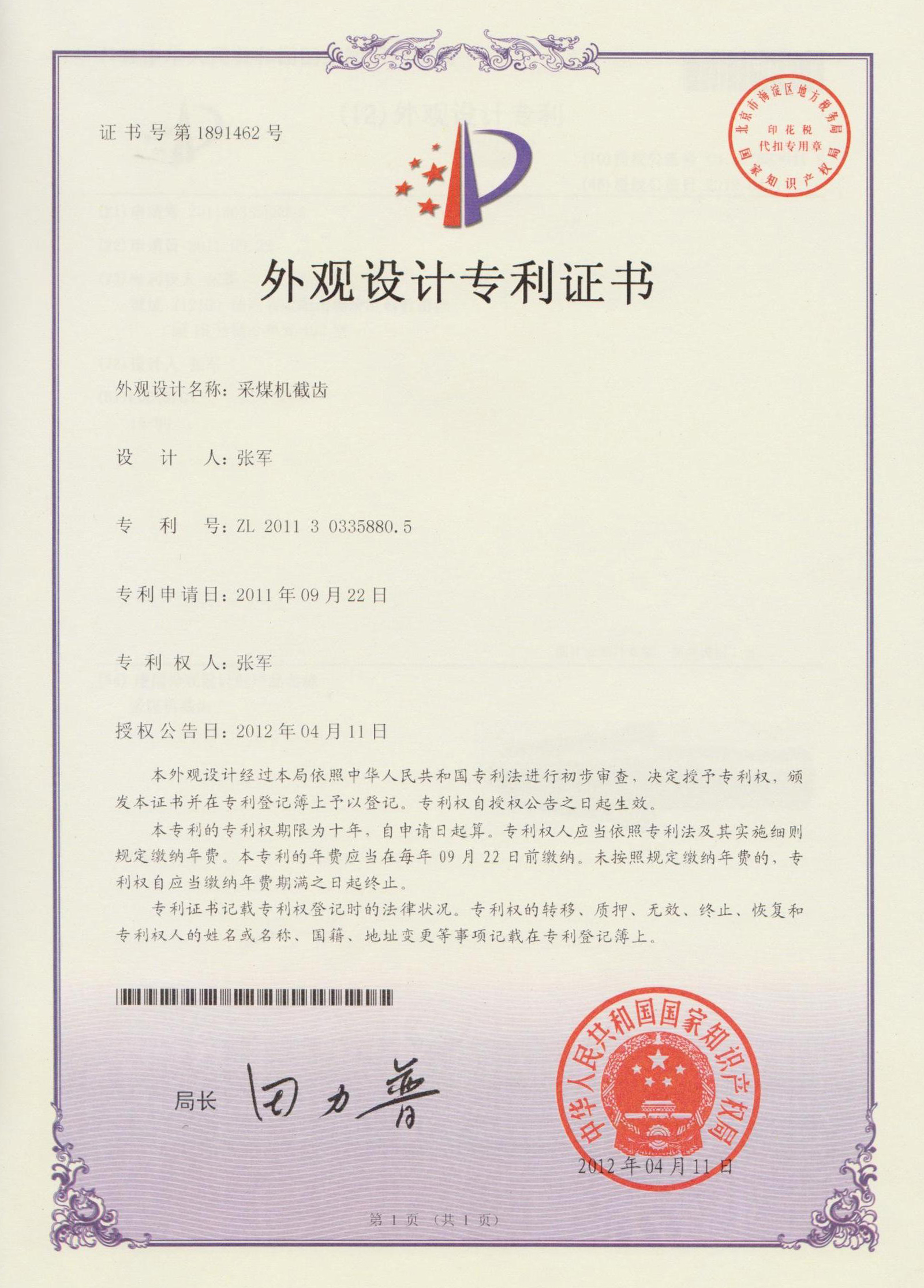 外觀設(shè)計(jì):采煤機(jī)截齒