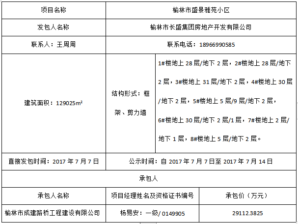 榆林市盛景雅苑小區(qū)直接發(fā)包結(jié)果公示