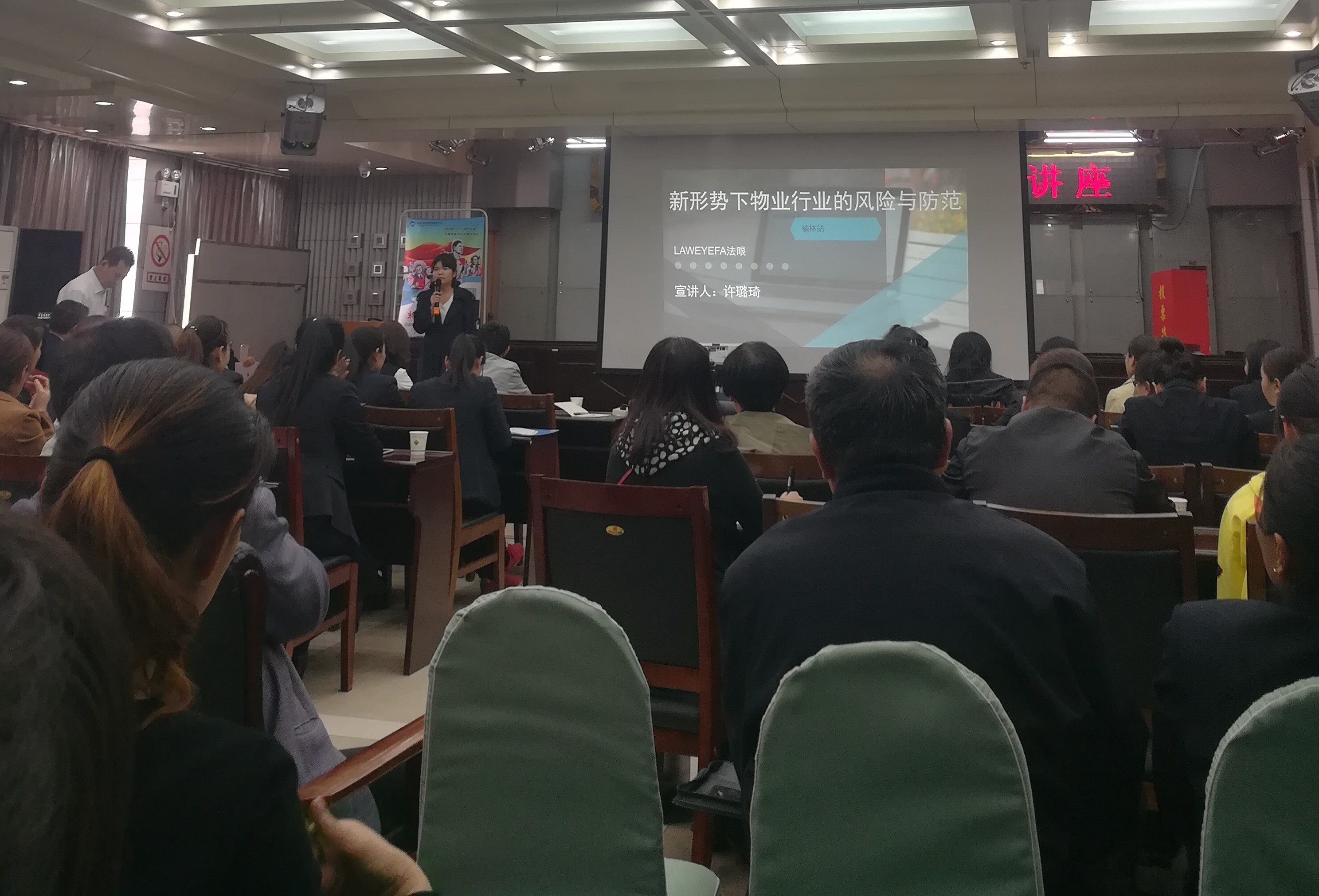 2018415日由榆林市物業(yè)管理協(xié)會(huì)主辦的“物業(yè)法律公益大講座”在市住建局三樓多功能會(huì)議室成功舉辦,邀請(qǐng)法眼云律網(wǎng)絡(luò)集團(tuán)有限公司首席講師周華斌、講師張吳迪和許璐琦開(kāi)講。