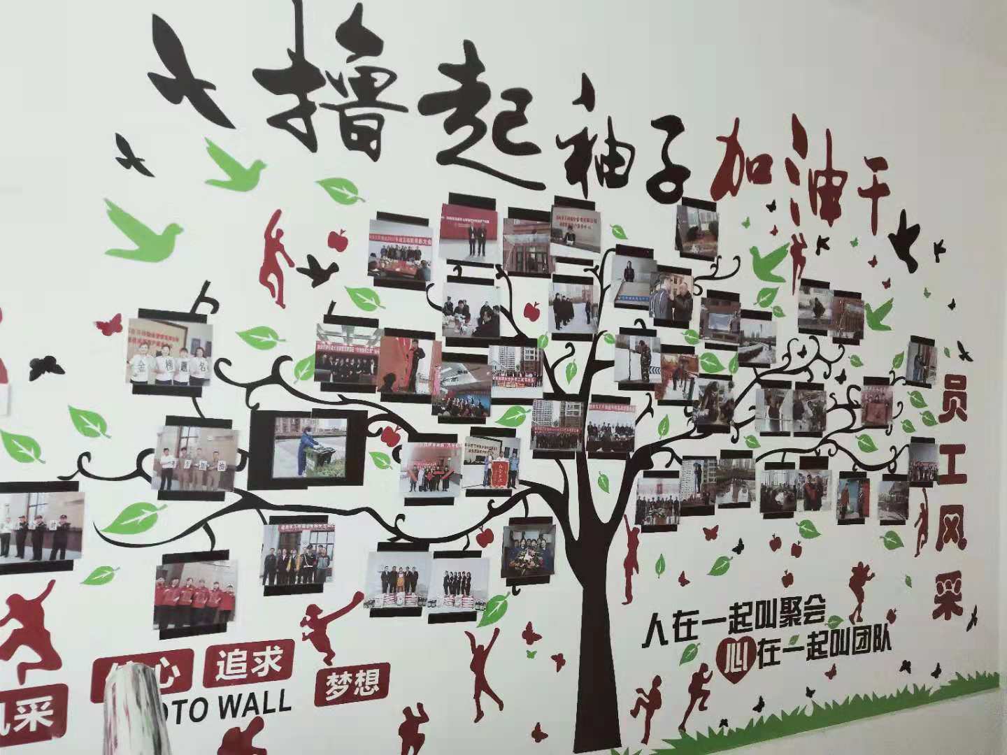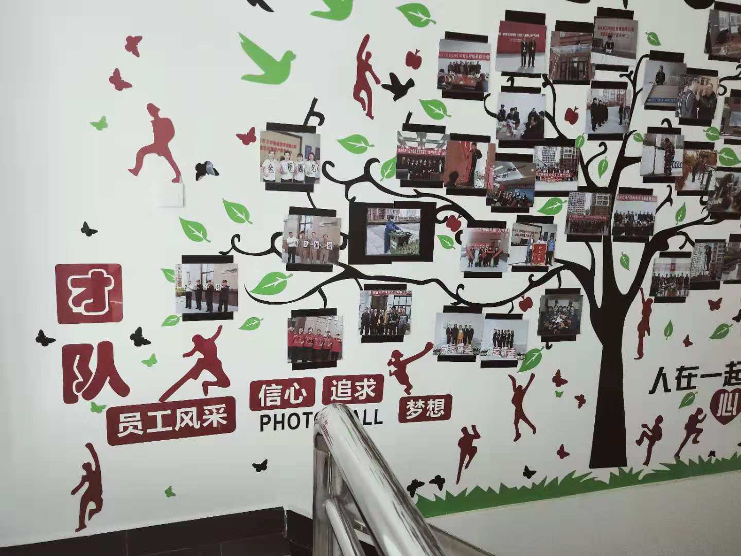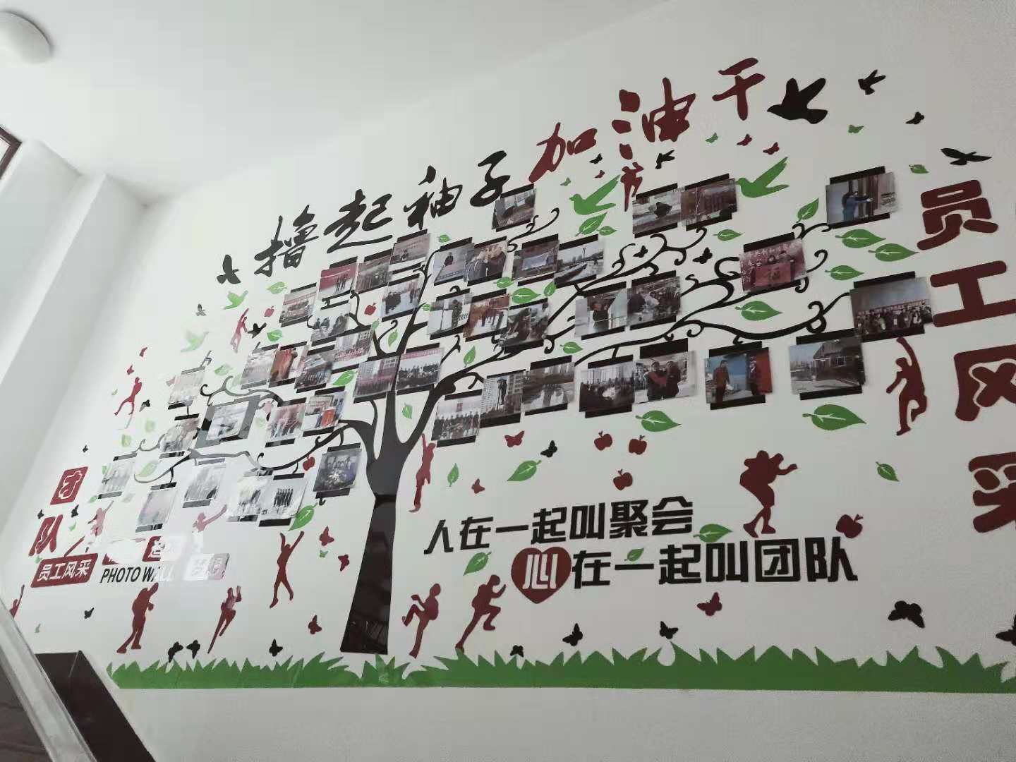 為加強(qiáng)公司企業(yè)文化管理,培育良好的企業(yè)文化氛圍,促進(jìn)企業(yè)文化建設(shè)工作健康有序發(fā)展, 20189月,我們選用亞克力材料的墻貼“成功的階梯”,激勵(lì)員工激發(fā)潛能,積極向上; 10月建立起照片墻,把我們的團(tuán)隊(duì)、員工風(fēng)采照片展現(xiàn)在這面有限的墻上。