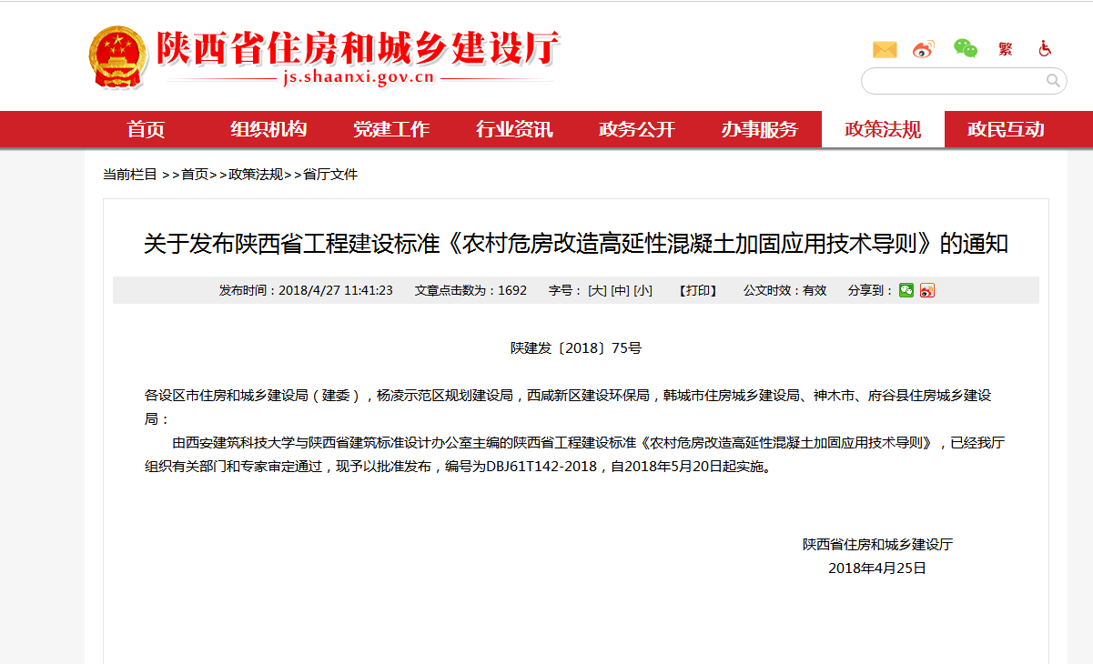 陜西省住房和城鄉(xiāng)建設(shè)廳緊跟新時期發(fā)展步伐,結(jié)合陜西農(nóng)村危房改造的實際情況,于4月8日下午召開“陜西省工程建設(shè)標準《農(nóng)村危房改造高延性混凝土加固應(yīng)用技術(shù)導(dǎo)則》(送審稿)審查會”。西安建筑科技大學(xué)“高延性混凝土材料與結(jié)構(gòu)研究所”所長——鄧明科教授代表編制組詳細介紹了《導(dǎo)則》的編制意義和主要內(nèi)容。參與評議的審查專家分別來自:陜西省建筑標準設(shè)計辦公室、長安大學(xué)、中國建筑西北設(shè)計研究院、陜西省建筑設(shè)計研究院、陜西省建筑科學(xué)研究院、西安市建筑設(shè)計研究院、中聯(lián)西北工程設(shè)計研究院、陜西建工集團,經(jīng)過認真激烈的研討與審查,《導(dǎo)則》最終獲得全體評審專家的一致通過,是全國首個響應(yīng)實施住建部《農(nóng)村危房改造基本安全技術(shù)導(dǎo)則》要求的地方安全技術(shù)導(dǎo)則。